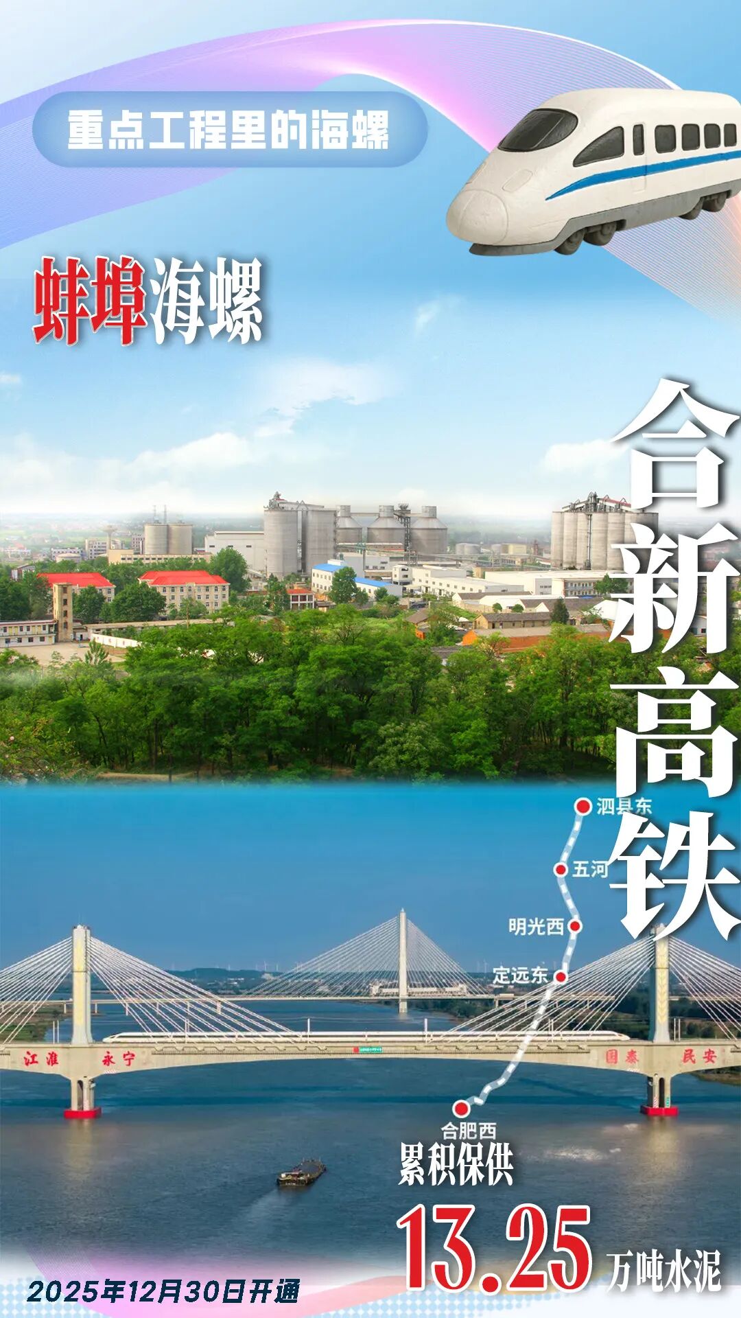 蚌埠海螺为合新高铁合肥至泗县段项目建设累积供应13.25万吨高品质水泥。