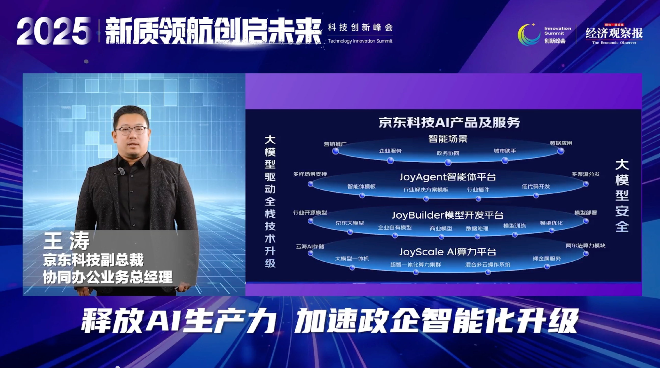 京东科技副总裁王涛介绍了京东科技在大模型领域的全栈布局,其构建的大模型产品和服务矩阵已深度应用于政务 “一网协同”“一网通办”“一网统管” 及企业协同办公场景,元鼎证券官网孵化超 3 万个高价值数字员工,多项案例获行业权威认可,智能问数核心技术位列全球第四。